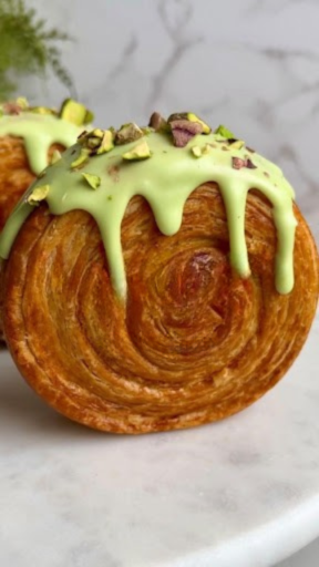 Croissants con pistacho, donuts de pistacho, muffins de pistacho, cookies de pistacho, cheesecake con pistacho, brownie de pistacho, pizza con pistacho, pan con pistacho, bebidas con pistacho.